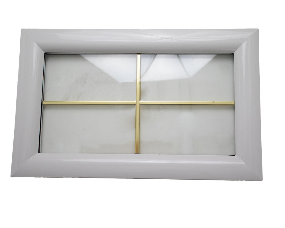 Composition de L'ensemble : - 1 x Cadre Extérieur - 1 x Cadre Intérieur - 10 x Vis TFC Ø4.2x45 - laqué Blanc - 3 x Cales de Vitrage - 1 x Vitrage 33/2-16-4 Clair avec Motif Croix Laiton