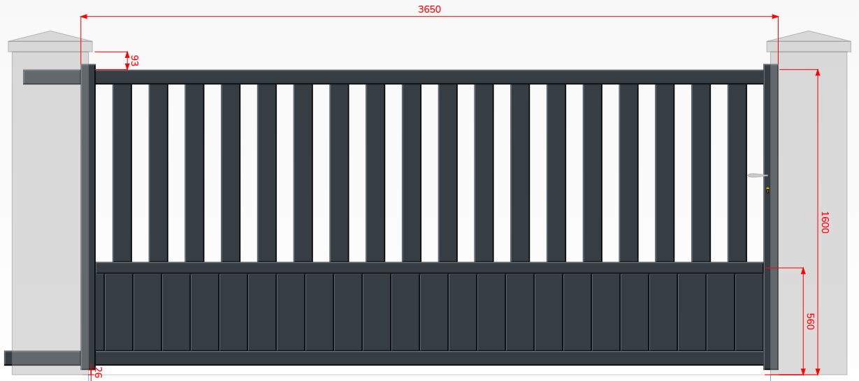 Largeur entre piliers (sous chapeaux) : 3570 mm